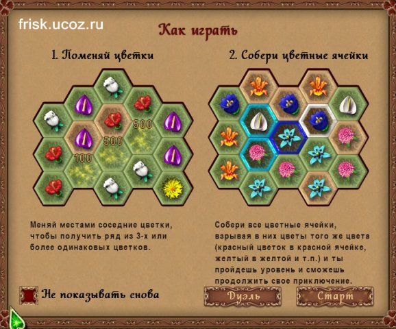 В этой увлекательной игре вам необходимо помочь юной волшебнице Маше, которая отважилась бросить вызов силам тьмы. Чтобы приготовить магический эликсир, который навсегда изгонит зло из волшебного королевства, ей необходимы артефакты и магические знаки. Добыть их — ваша задача. Передвигайте по игровому полю фишки, выполненные в виде цветов, и создавайте из них непрерывные цепочки из 3 (или более) одинаковых элементов. Впереди вас ждет множество замечательных уровней, которые можно проходить в любом из трех игровых режимов. Эта логическая аркада понравится игрокам абсолютно всех возрастов. Вам предстоит решить множество увлекательных головоломок сойтись в поединке с могущественными силами зла. Радужная загадка порадует вас красочной графикой и отличным звуковым сопровождением, которые помогут вам пройти все 80 уровней.